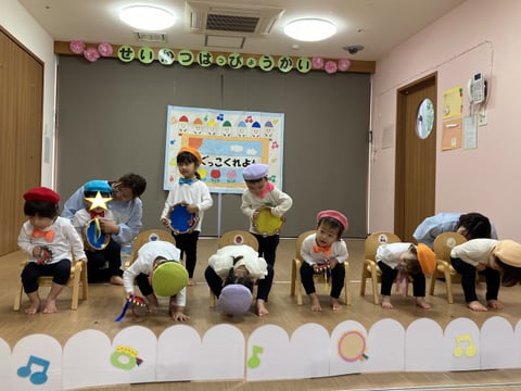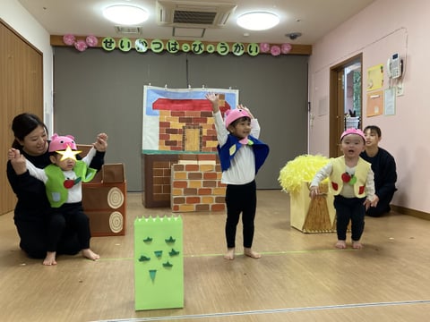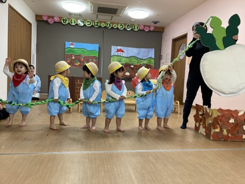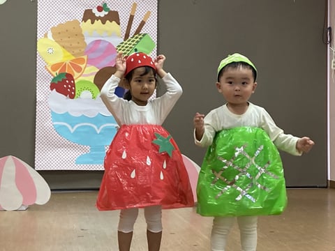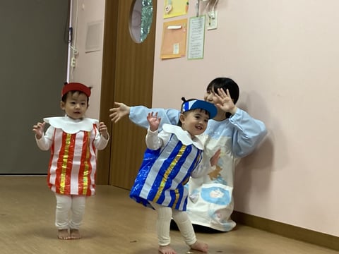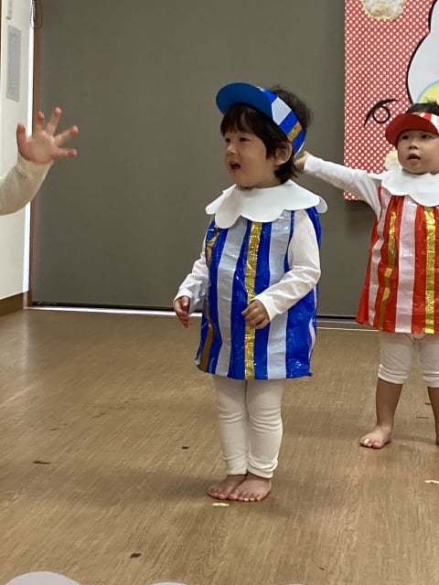 発表会当日は、いっぱいいっぱいで、園では撮影ができませんでしたので、3回目のリハーサルの際に撮影した写真を載せております(^^♪