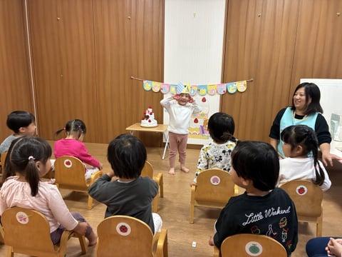 そして、おやつの後に、今日で退園となるお友だちのお別れ会をしました。
