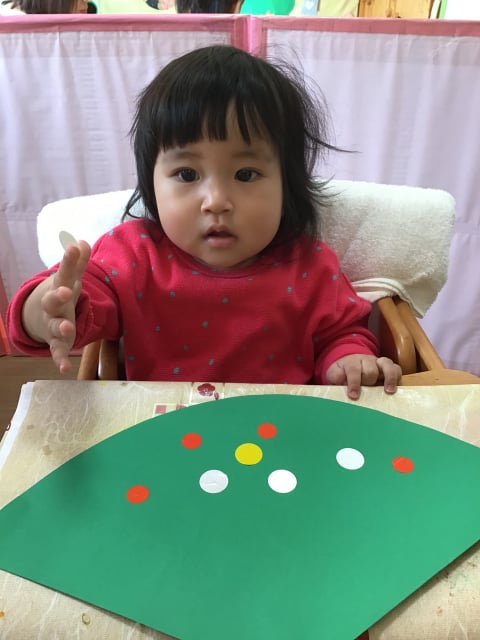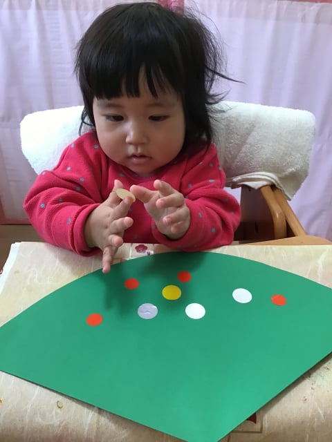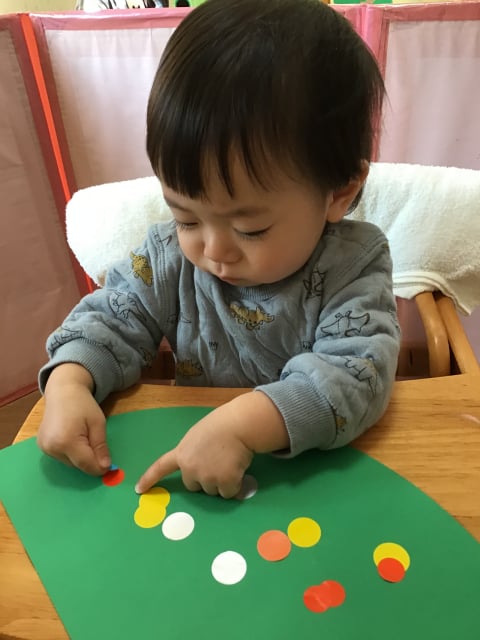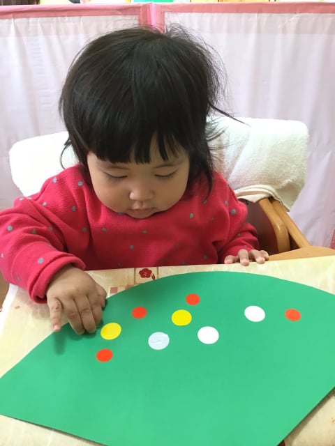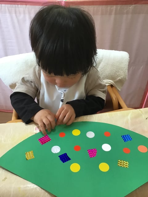 小さな指で一生懸命シールを貼っています(^_-)-☆