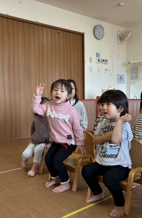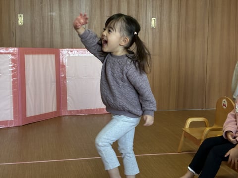 レッスンが始まる前に、みんなで『I 'm here』とお返事の練習をしていたのですが、いざレッスンが始まると嬉しくて嬉しくて、思わず『は~い♡』と答えるお友だちもいました(*^▽^*)