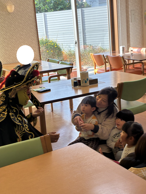 最後は『面白かったね。でもちょっと怖かったね』と笑顔でバイバイできましたが、25日のクリスマス誕生日会は、この食堂でクオーレの方と一緒に行う予定なので、サンタクロースさんで記憶が上書きされたらいいなぁと思っています(^_-)-☆