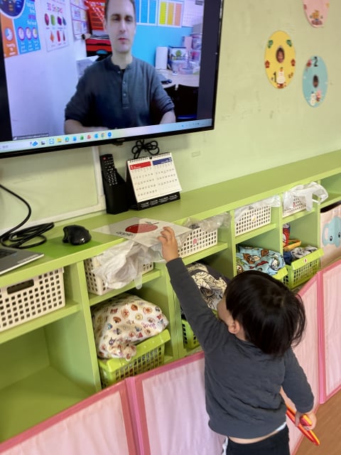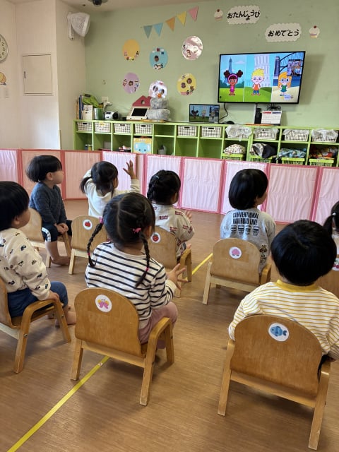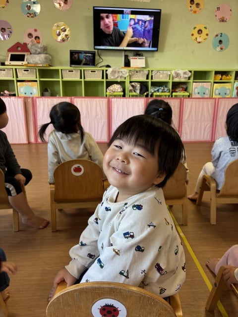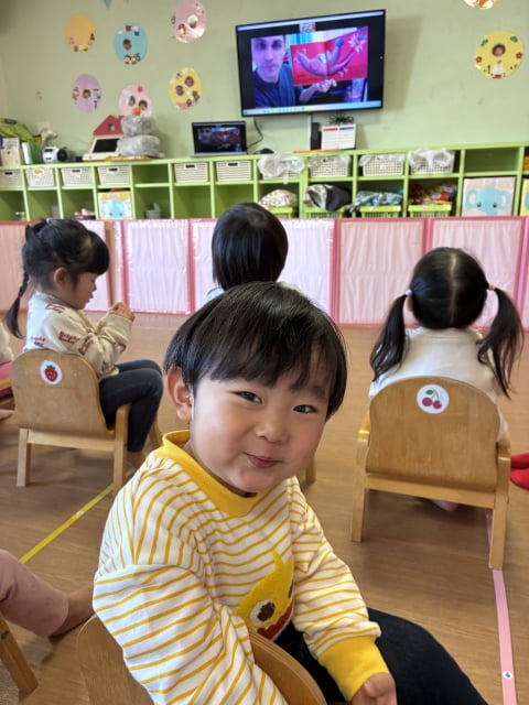 マイク先生に、元気いっぱい『I am here』とお返事する姿も堂々としてきました(*^▽^*)