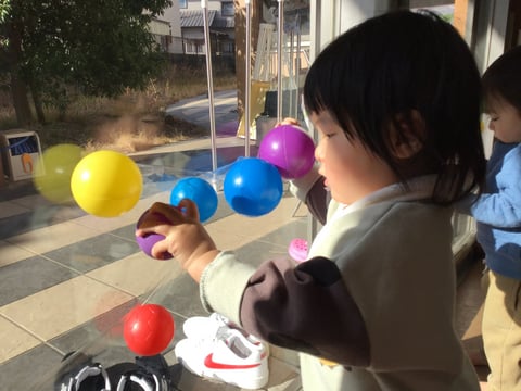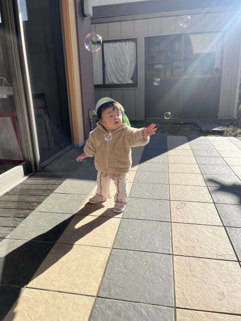 ふわふわと飛んでいくシャボン玉を不思議そうに、そっとさわっていました(*^▽^*)