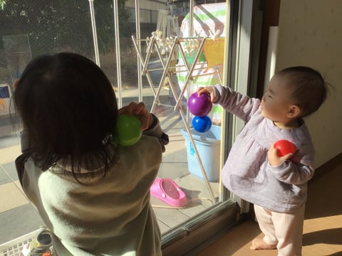 ひよこ組の前の裏庭は、施設に守られている為か、北風が吹くこともなく、とても穏やかです(*^▽^*)