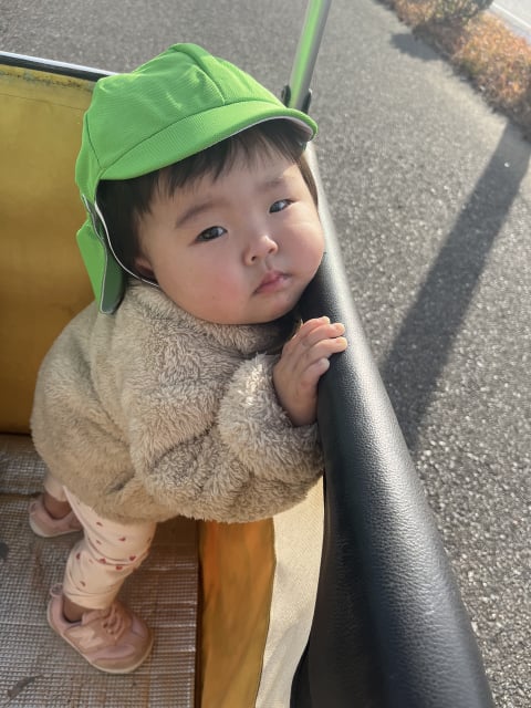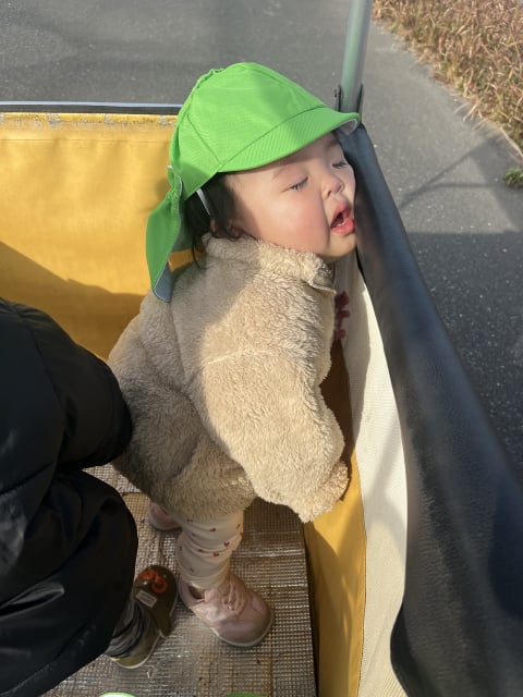 ぽかぽかお日様と、この何とも言えないお散歩カーの揺れ・・・(*^^*)