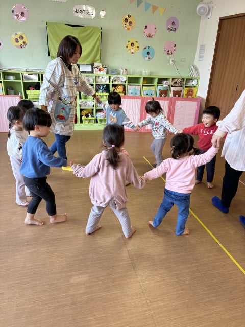 木曜日の朝はわらべ歌あそびでスタートします(*^▽^*)