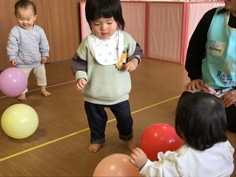 また、手を繋いで横に歩くのは、体幹がしっかりしてこないと、なかなか難しく、うさぎ組さんには少し難しかったのですが、上手に歩けるようになりました(*^▽^*)