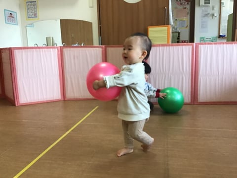 自分のお顔より大きなボールを、一生懸命運ぶ姿に癒されます♡