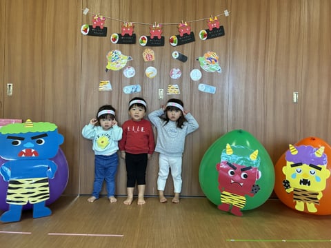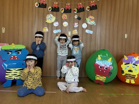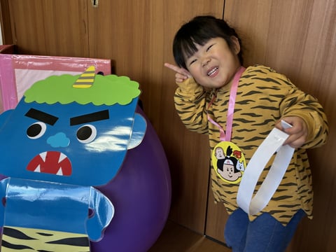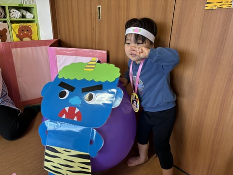最後に勇敢に鬼退治してくれた子どもたちは、お土産にメダルをプレゼント🎁を貰って、とても満足気な子どもたちでした♡