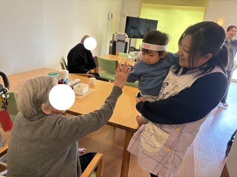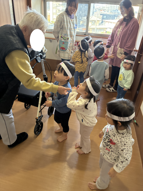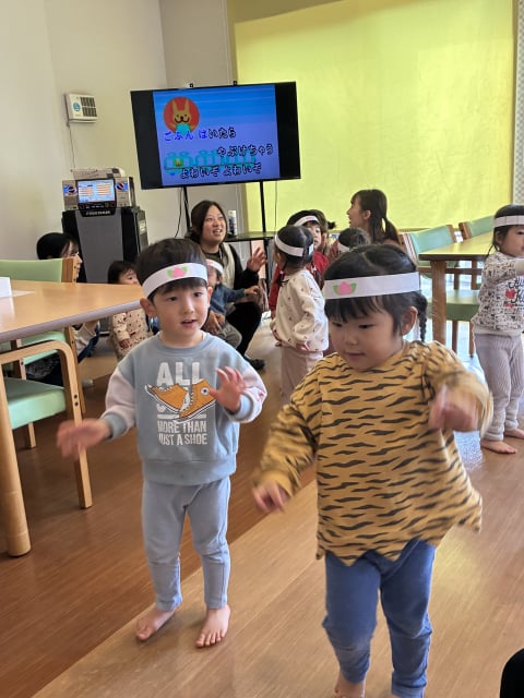 クオーレのおじいちゃん達も豆まきしているかな?と遊びに行ったのですが、すでに終わっていたようで、得意の【おにのパンツ】もダンスをお披露目して、気分はもうアイドルです(*^▽^*)