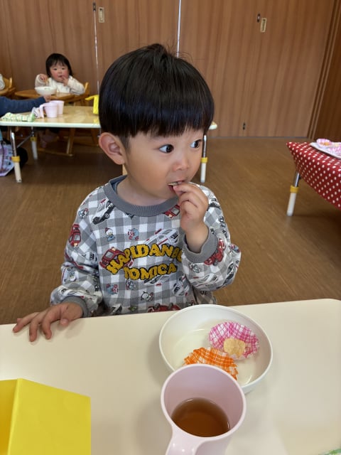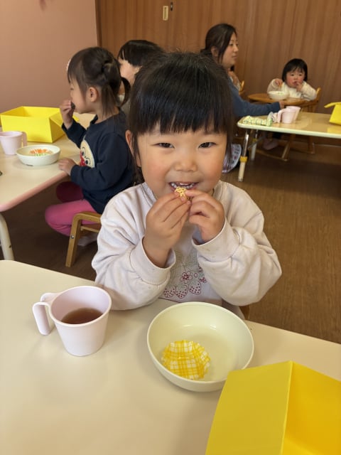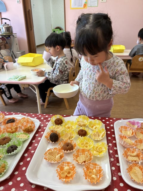 おやつバイキングは、和気あいあいと食べて欲しいのですが、毎回子どもたちは真剣で、食べながらも次のおやつに目がいっています(^_-)-☆