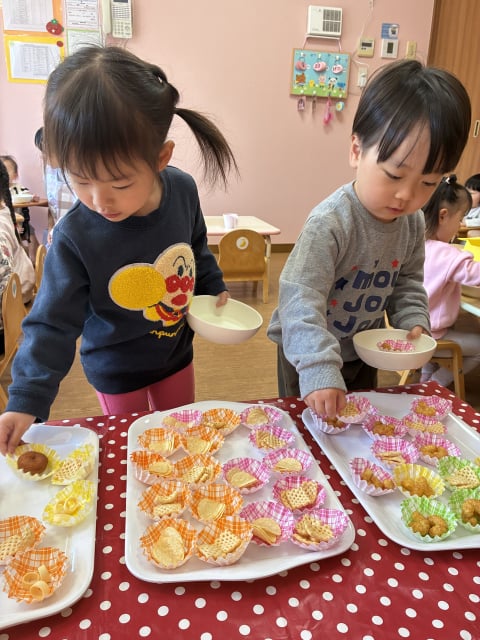 今日のバイキングのお菓子は、先日ぞう組さんがお買い物してきてくれたお菓子です♡