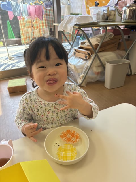 なんなら、口いっぱい頬張って、足は横向き、お尻が少し浮いているお友だちも(*^▽^*)