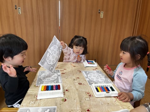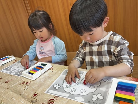 桜の思い出で鮮明なうちにと、ぞう組さんが桜の塗り絵を楽しんでいました(*^▽^*)